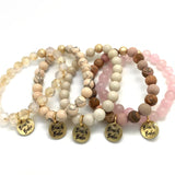 Choose between the five singles pictured with our STACKED exclusive two sided "Beach Babe" charm. Made with Swarovski crystals, jasper, quartz or gemstones. *Sold as a single bracelet.