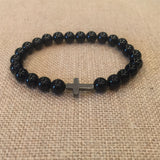 The Stacked Collection- for men, is designed for every man! This bracelet is made with 8mm black agate and a pyrite cross.