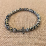 This bracelet is made with 6mm dalmatian jasper and a pyrite cross.