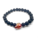 The Stacked Collection- for men, is designed for every man! This single contains 8mm lava and matte black agate beads with an orange Swarovski Crystal skull bead.