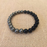 This bracelet is made with 8mm black agate and 8mm pyrite.