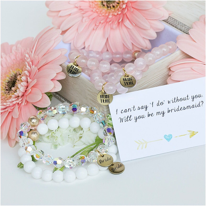 Blush pink jade with our custom two sided "BRIDE TRIBE" charm.