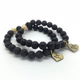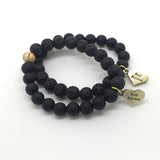 These stacks are made with black agate and lava with our small STACKED exclusive "Best Bitches" charms.