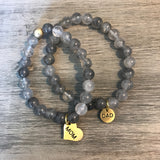 This couples set comes with the two his & her singles pictured with our custom Mom and Dad two-sided charms.