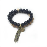 -8mm matte black agate and onyx with middle finger emoji charm