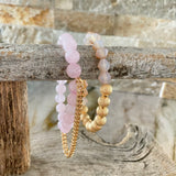 Comes with the two singles pictured with gold filled chain and accents. Made with rose pink quartz and crystals. Please leave a note in the "SPECIAL INSTRUCTIONS" section at checkout to add a charm.