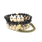 This stack comes with the four singles pictured with our custom "Beauty lies within" two-sided charm. Made with Swarovski Crystal and gemstones.