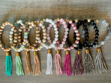 Choose between the tassel colors pictured. *Sold as a single bracelet.