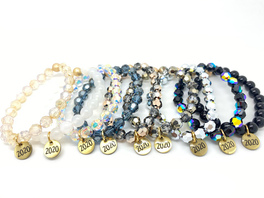 Choose between the singles pictured with our STACKED exclusive two sided "2020" charm with gemstones or Swarovski crystals.