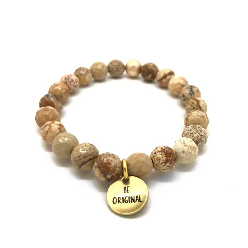 This single comes with our custom two-sided "BE ORIGINAL" charm. Made with jasper.
