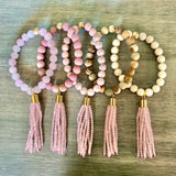 Our blush pink tassel comes on the five singles pictures. Sold as a single bracelet. Choose between (L-R) pink quartz, matte pink, baby pink, jasper, black or nude.