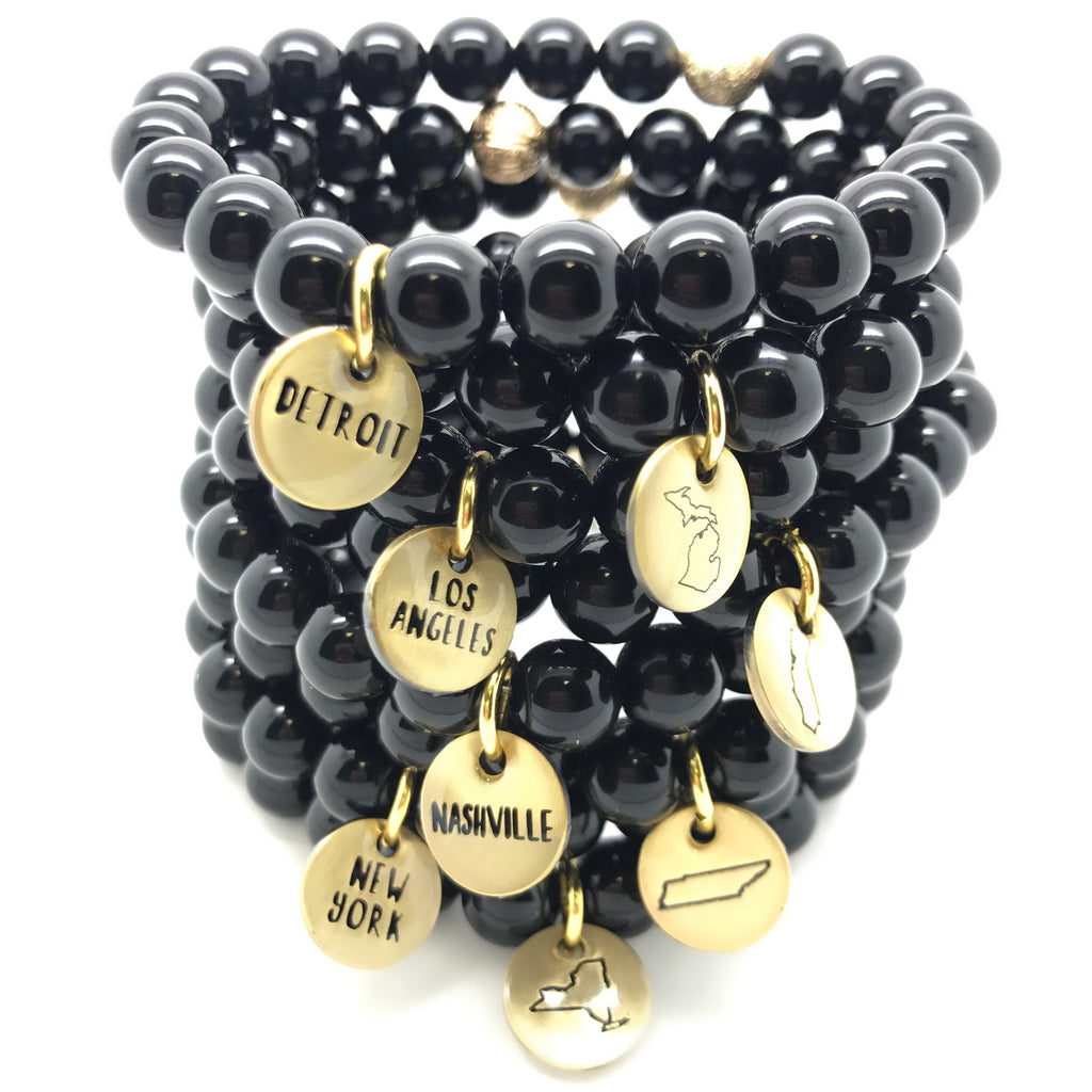 Our City, State singles are sold separately. Each come with our custom two-sided charm with the city on one side and the state outline on the other side. Choose between the four below.