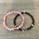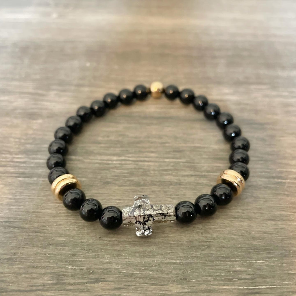 *Sold as a single bracelet. Choose between pink or black 6mm gemstones with a crystal cross and gold filled accents.
