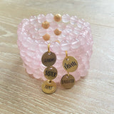 *Sold as a single bracelet. Choose between our STACKED exclusive double sister, Grandma, Mom, Sister, Daughter, or Aunt charm on rose quartz gemstones.