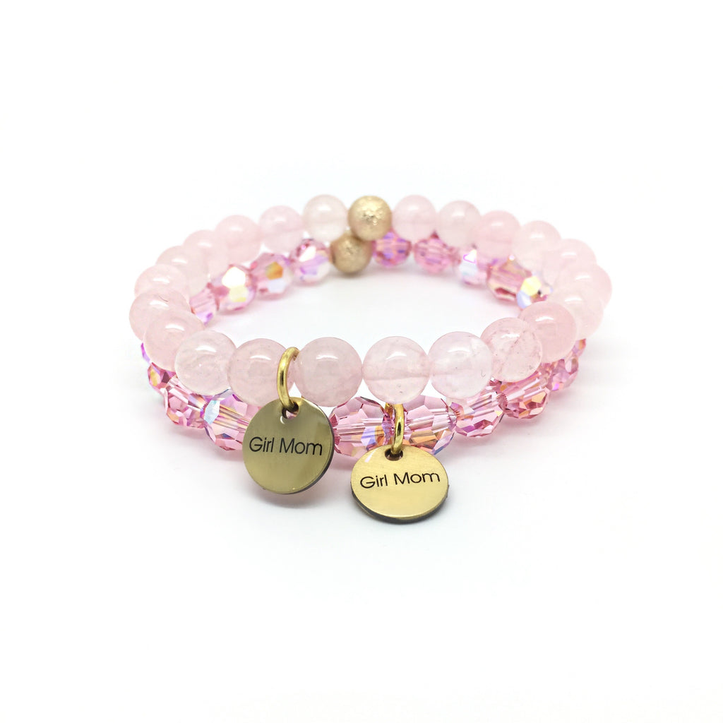 Choose between Swarovski Crystals or quarts with our custom two sided “Girl Mom” charm.