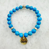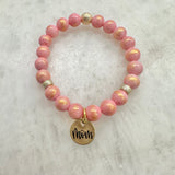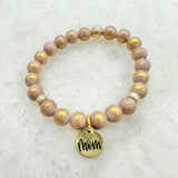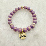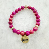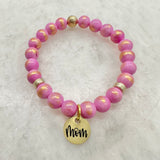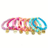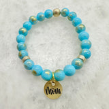 Choose between the 7 singles pictured. Made with 8mm gemstones and gold filled accents with our STACKED exclusive two sided Mom charm.
