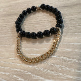 Made with 6 and 8mm gemstones and gold filled accents and chain detail.