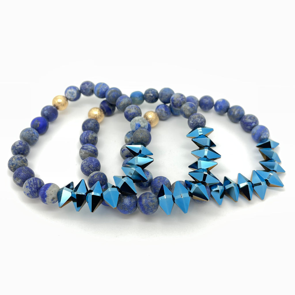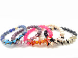 Choose between the five colors pictured. Made with 8mm gemstones and 6mm crystals.