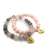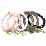 Colors pictured left to right: Light pink, matte pink, white, tan, gray, black.