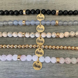 Choose between the stacks pictured with our STACKED exclusive two-sided "Mom" charm with gold filled accents.