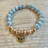 Made with our STACKED exclusive two sided "Peace" charm with gemstones and gold filled accents.