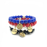 This single bracelet comes with our custom two sided charm that says "PLAY BALL" on the front and has a baseball on the back. Choose between black, red, white or blue.
