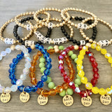 *Sold as a single bracelet. White, blue, orange, red & yellow are Swarovski crystals. Gemstones are pictured in green.