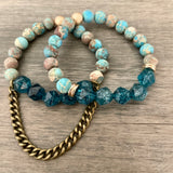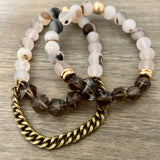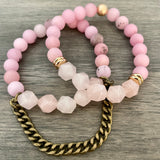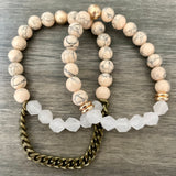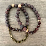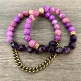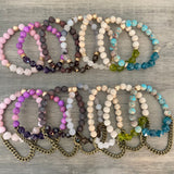 Sold as a single bracelet. Choose between the colors and styles pictured. Made with quartz, amethyst, garnet and gemstones.