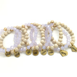 Choose between our STACKED exclusive double sided "SISTER" "AUNT" "GRANDMA" or "MOM" charm on light opal Swarovki crystals or nude gemstones.