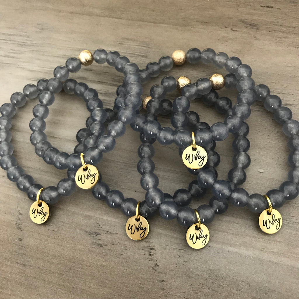 The wifey single comes with our custom two sided wifey charm on gray jade.
