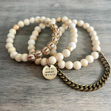 This stack comes with the 3 singles pictured with chain detail, gold filled accents and our STACKED exclusive two sided "It's the most wonderful time of the year" charm.