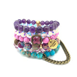 This stack comes with the six singles pictured with our STACKED exclusive two sided "Mermaid Vibes" / Mermaid scales graphic charm. Made with 8 and 10mm gemstones, Swarovski crystals and gold filled accents.
