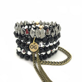 The OG stack comes with the six singles pictured and our custom two sided “OG” charm. Made with 6 and 8mm gemstones and Swarovski crystals.