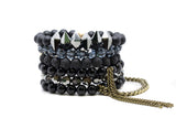 This stack comes with the six singles pictured. Made with gemstones and Swarovski crystals with chain detail.