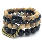 This stack contains the four bracelets pictured with chain detail. Made with jasper, agate and Swarovski crystals.