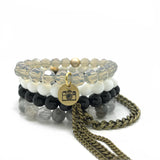 This stack comes with the four singles pictured with chain detail and our custom two sided camera charm.mMade with quartz, agate and Swarovski crystals.