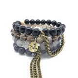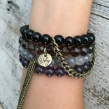 This stack comes with the four singles pictured with chain detail and our custom two sided "Wifey" charm. Made with quartz, jade, and agate.
