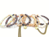 This stack comes with the 9 singles pictured with our STACKED exclusive two sided "THE BEST IS YET TO COME" and "Cheers!" charms. Made with gemstones, crystals, gold filled accents and chain detail.