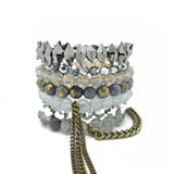 The TAMRA double stack comes with the seven singles pictured. Made with gemstones, Swarovski crystal and chain detail.