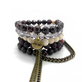 This stack comes with the five singles pictured with our STACKED exclusive "Wine not?" double sided charm with chain detail. Made with garnet, gemstones and Swarovski crystals.